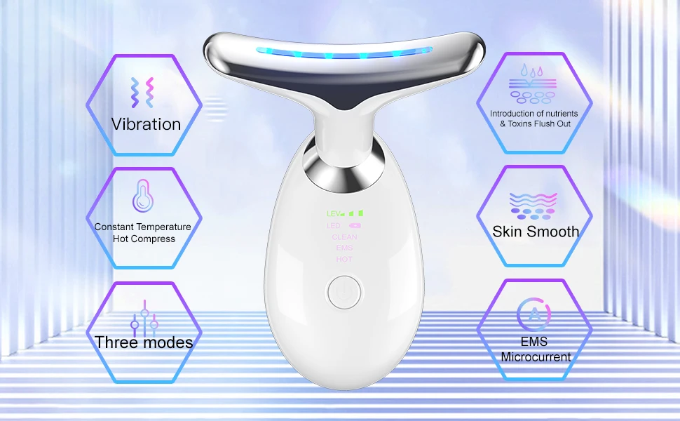 1. Professional Skincare: Our facial massager is designed to deliver a professional grade skincare experience suitable for both men and women of all ages and skin types.2. Multi Color Lights: With our LED light face massager, you will harness the power of multi colors of light to rejuvenate your skin, leaving it smoother and brighter than ever.