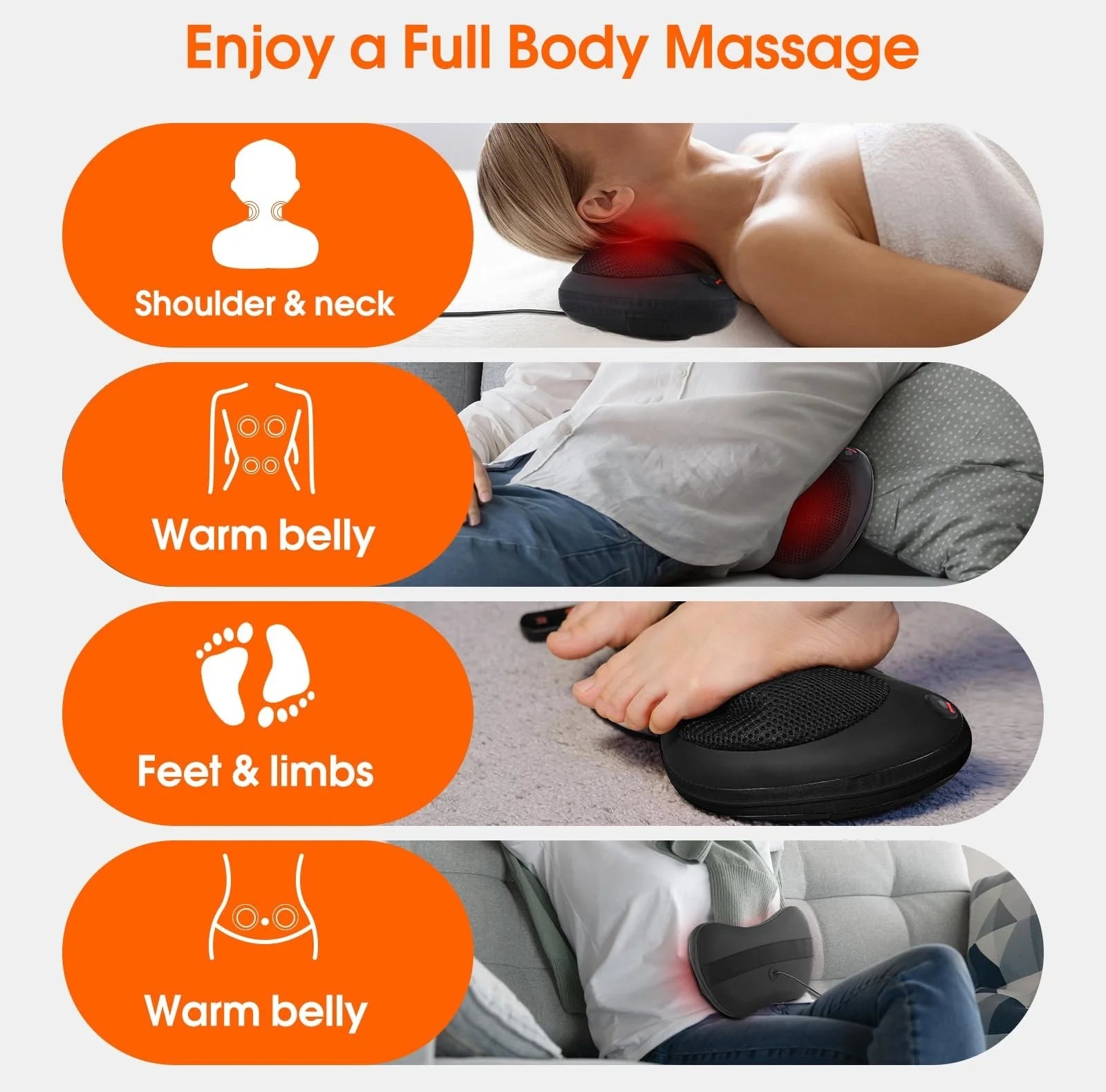 Back and Neck Massager with Heat, Deep Tissue Kneading,Electric Massage Pillow for Back,Shoulders,Legs,Foot,Body Muscle Pain Relief,Use at Home,Car,Office