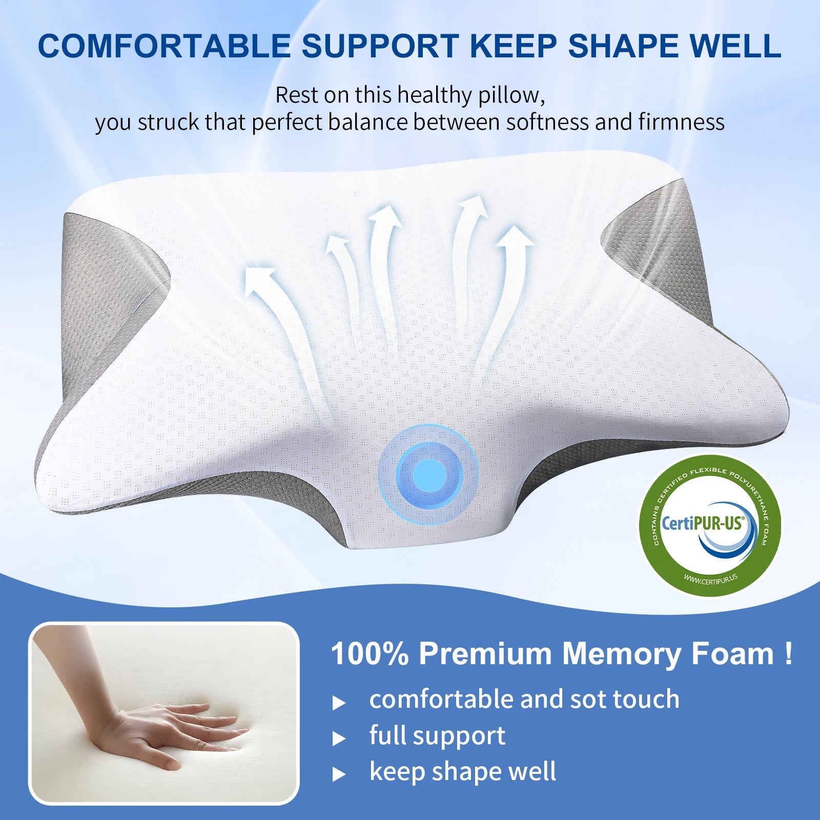 [Safe & Odorless Memory Foam - A Healthy Sleep Ensured]The unique nontoxic, non-allergenic, molded foam design. The cervical pillow is made with high-quality rebound memory foam that is CertiPUR-US certified. Its temperature sensing, making the pillow FITS YOUR NECK perfectly. The best pillow for neck and shoulder pain is firm enough to hold the head at a healthy angle, but soft enough to alleviate pressure points. Choose us, the symbol of all-nature and great support.
