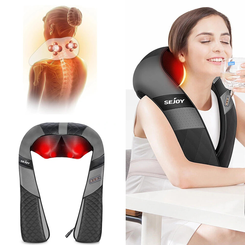 Sejoy Rechargable Neck Massager with Heat Air Compression Wireless Circulation Massage Electric Shiatsu Neck Shoulder Massager